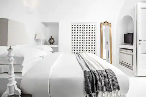 This will be your ultimate villa in Santorini, with 1 king bed, en suite bathroom from where watch the stunning sunset views.